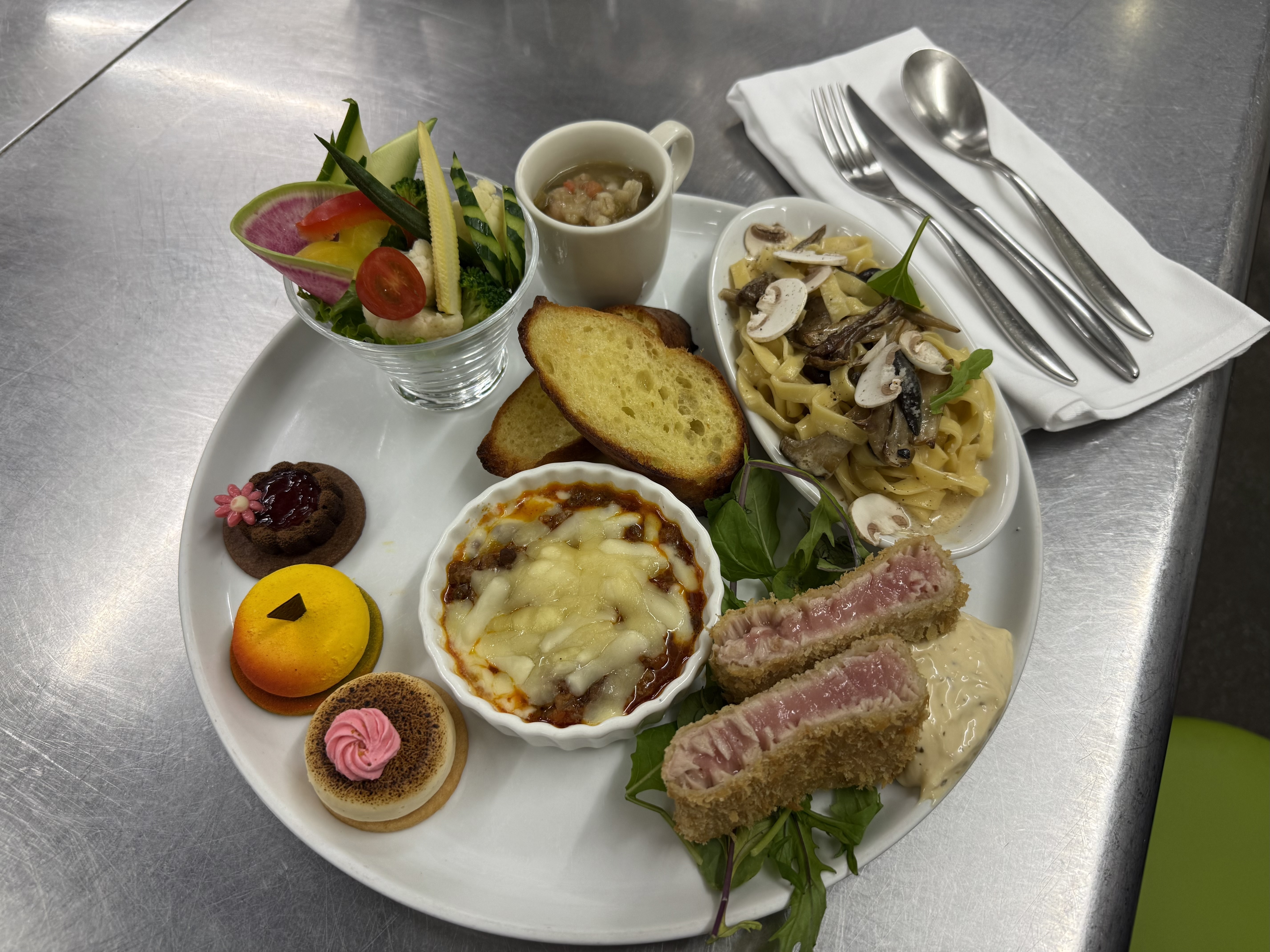 盛りだくさん贅沢プレート💟 デザートまでついて本当に一人分!?の量を食べさせてもらえちゃう🫶🏻 ビュッフェ形式だから、好きなものを好きなだけ食べられちゃう!