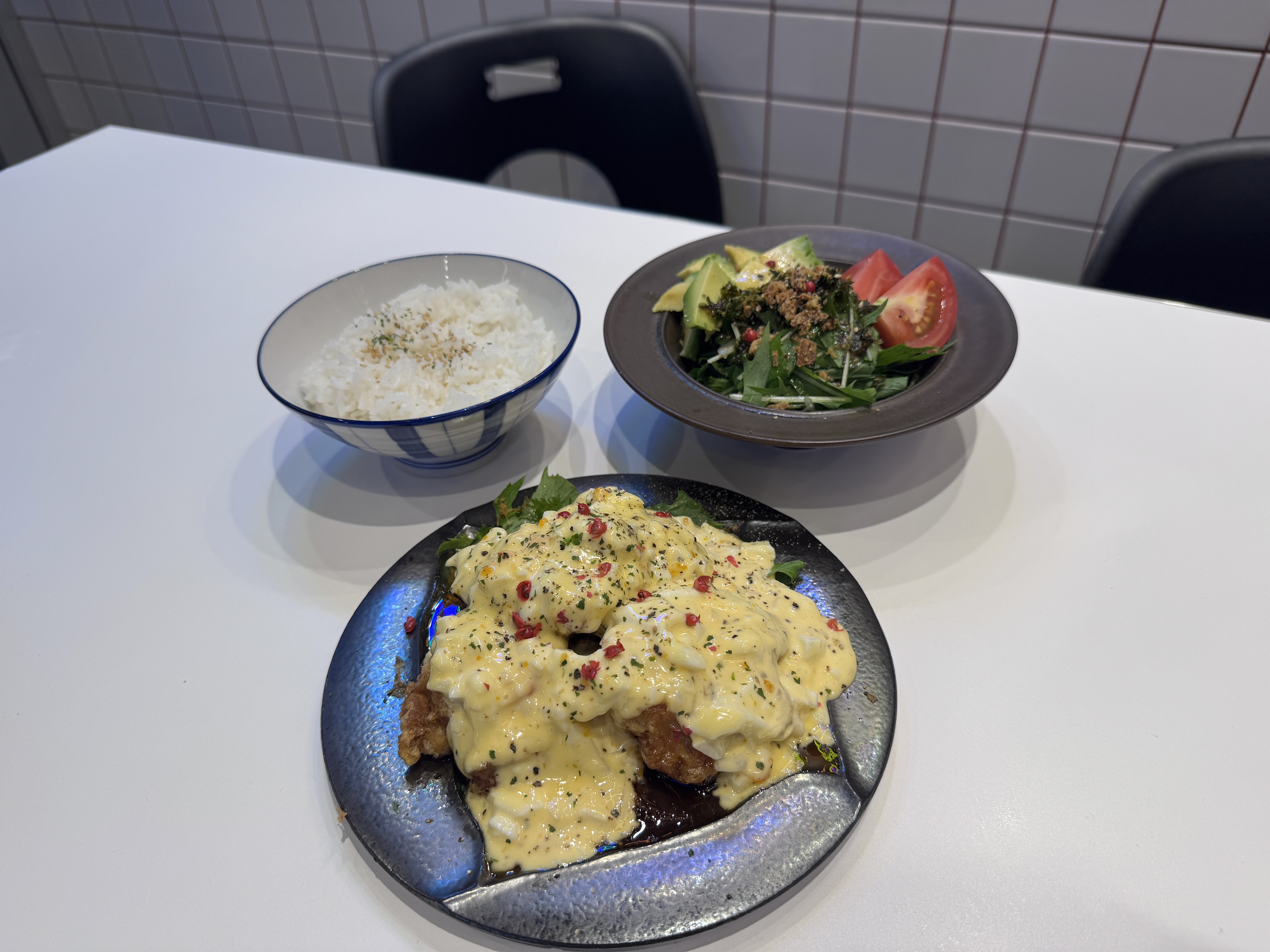 まかないは、チキン南蛮にアボカドサラダとご飯🍚定食ぐらいボリュームあってお腹いっぱいになって帰れちゃう🌟チキン南蛮はカリカリでソースが絡み合ってて美味しかった🤤