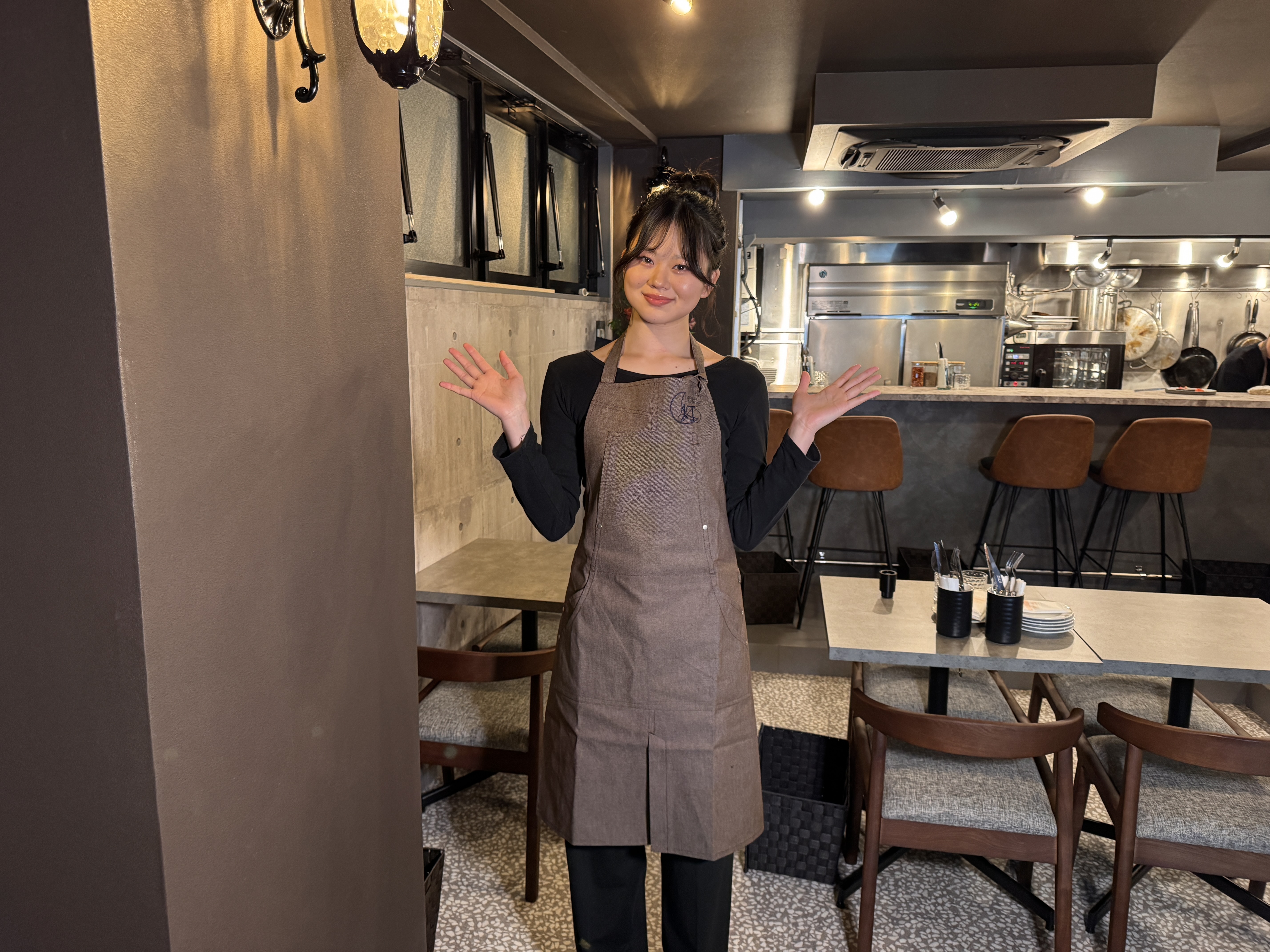 黒シャツにエプロン!お店の雰囲気とバッチリあっててオシャレ✨️