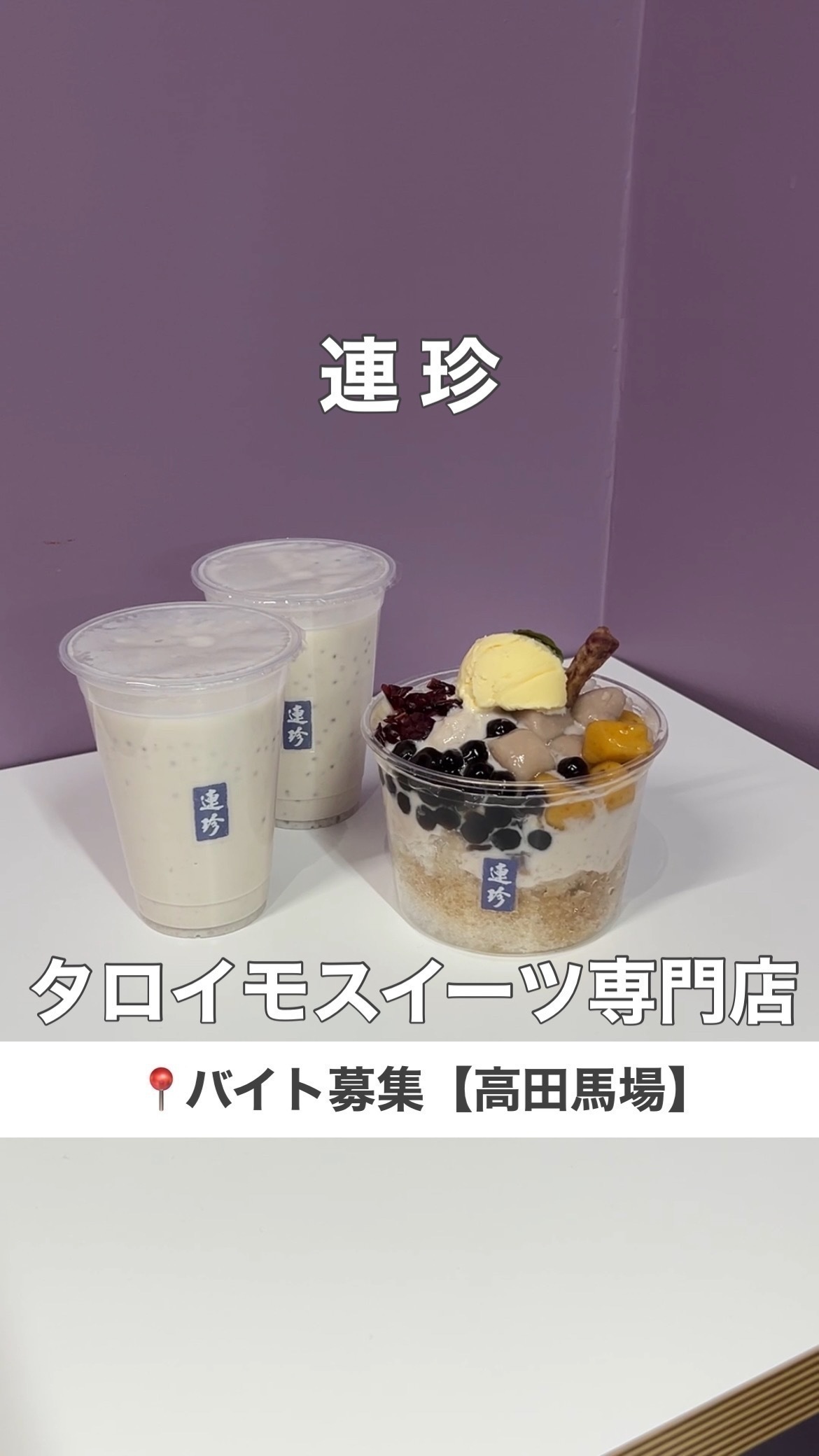 山手線高田馬場駅の連珍さんがアルバイト募集中!タロイモスイーツって響きがすてきだよね、、!