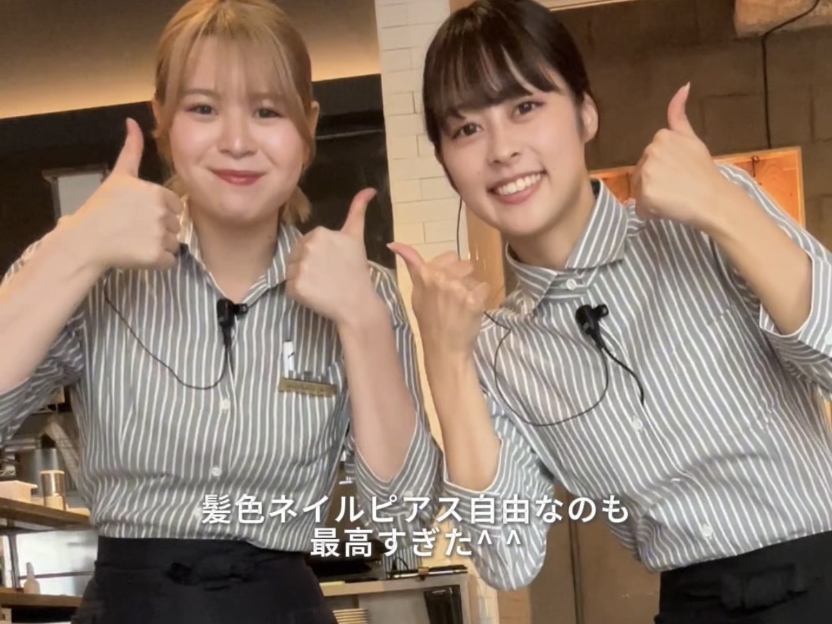 髪色ネイルタトゥー自由だからギャルでも働けちゃう✨💅 まかないが美味しすぎて毎日でもシフト入れる🤤